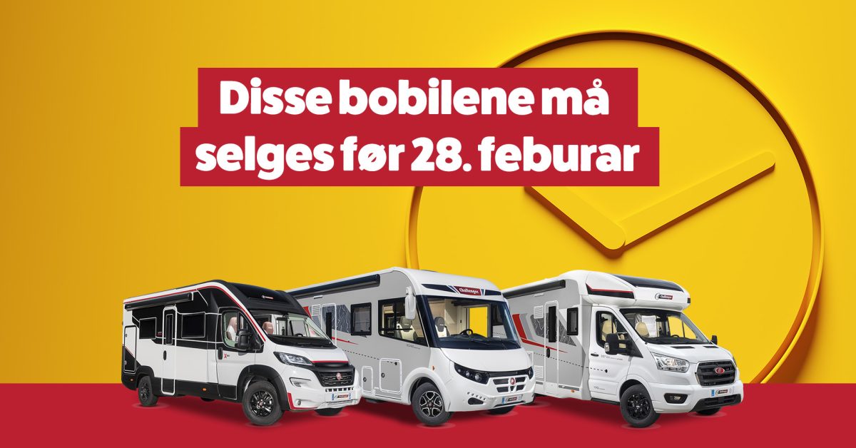 Bobilkjeden Arve Opsahl AS selger nå ut helt nye bobiler til ekstra gode priser. Dette er en tidsbegrenset mulighet – når de er borte, er de borte.