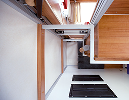 For å gjøre reisen både maksimalt komfortabel og helt uavhengig, har alle Eura Mobil-bobiler vintersikker teknikk som er montert på en plassbesparende måte i det gjennomgående dobbeltgulvet. Om sommeren er dobbeltgulvet i din Eura Mobil en godt temperert kjeller. Om vinteren gir gulvvarmeeffekten et behageligere inneklima.