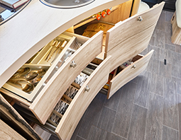 Med det eksklusive kjøkkenet fra Eura Mobil gjør du deg uavhengig av strengt regulerte måltider, tider og steder: Frokost på stranden, lunsj i fjellet eller en eksklusiv middag med levende lys ved havet – bare fantasien setter grenser. Hyggelig felles måltider for hele familien, eller romantisk middag for to. Der du vil, når du vil. Matlagingen er minst like avslappende på veien som hjemme.