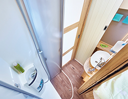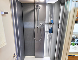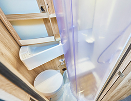 • Store skap og speil slik at du ikke skal mangle noe i det mobile baderommet