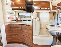 Synlig annerledes: I den nye Premium-vanen fra Eura Mobil gjør de eksklusive omgivelsene hvert øyeblikk til noe spesielt. Føl de edle materialene og opplev individuelle detaljer som gjør Eura Mobil-vanen til ditt helt personlige mobile hjem.