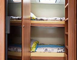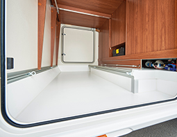 Takket være den gjennomtenkte doble bunnen med en høyde på opp til 37 cm, er volumet av oppbevaringsrommene økt med 3.800 liter, slik at seks personer kan utfolde seg på lange turer. Her er også teknikkrommet lett tilgjengelig og gir plass for opp til to batterier og vanntanker opp til 150 liter ferskvannsvolum – la ferien komme!