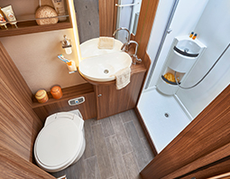 Med de smarte tekniske løsningene som arbeider ubemerket og kontinuerlig i bakgrunnen i din Eura Mobil, trenger du bare å nyte den deilige følelsen. De mange gjennomtenkte detaljene i vaskerommet og dusjen sørger for optimal wellness-følelse på reisen: Fra den opp til 150 liter store ferskvannstanken garanterer en kraftig trykkvannspumpe vannforsyning med samme vanntrykk som hjemme.